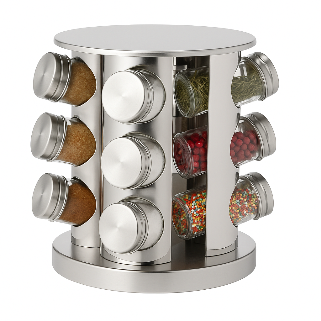 ¿Te ha pasado que estás cocinando algo delicioso y no encuentras la especia justo cuando más la necesitas? Ese caos diario en la cocina puede convertirse en un placer visual y funcional con el Carrusel de Especias. Mientras giras su base de 360°, accedes con una sola mano a todo tu arsenal de sabor. ¡Y sin perder tiempo buscando frasco por frasco!